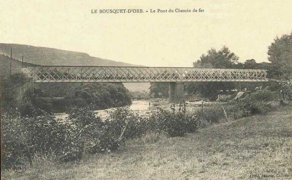 Le pont sur L'Orb : pont métallique de 52 mètres, en biais, à 2 travées de 26 mètres. Le milieu du fleuve marque la limite entre les communes de Lunas et du Bousquet-d'Orb.